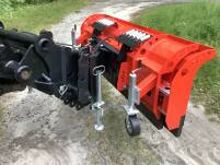 Łatwe i szybkie mocowanie na ramce EURO oraz przednim i tylnym trójpunktowym układzie zawieszenia TUZ to gwarancja szybkiego montażu i efektywnej pracy. W standardzie oferowany jest zaczep na przednim lub tylnym TUZ ciągnika, dzięki czemu nie ma potrzeby używania odśnieżarki z użyciem ładowacza. Samo podłączenie pługa jest niezwykle proste i bardzo wygodne dzięki zastosowaniu dwóch kół podporowych z regulacją oraz dwóch stopek. Regulacja kąta odśnieżania oraz szerokości lemiesza odbywa się poprzez system hydrauliczny bezpośrednio z kabiny ciągnika lub ładowarki . Urządzenie zostało wyposażone w system umożliwiający jednoczesne sterowanie skrętu lemiesza w lewo i w prawo do kąta 30 stopni. Pług posiada praktyczną, dolną gumową listwę zgarniającą śnieg, ziemię która dodatkowo amortyzuje pracę.
